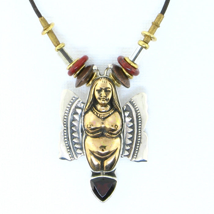 Tabra Amulet Cord Necklace Bronze Butterfly Goddess, Garnet & Jasper