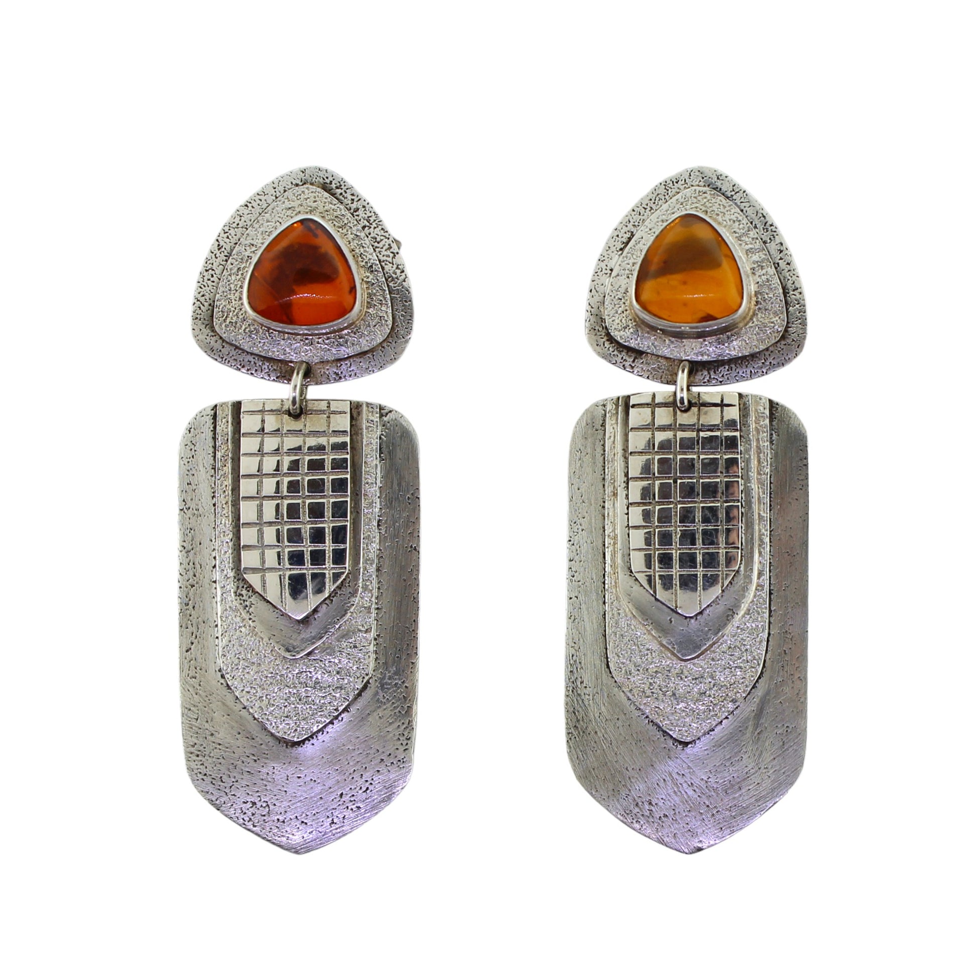 Tabra Vintage Amber Sterling Silver Emboss Earrings